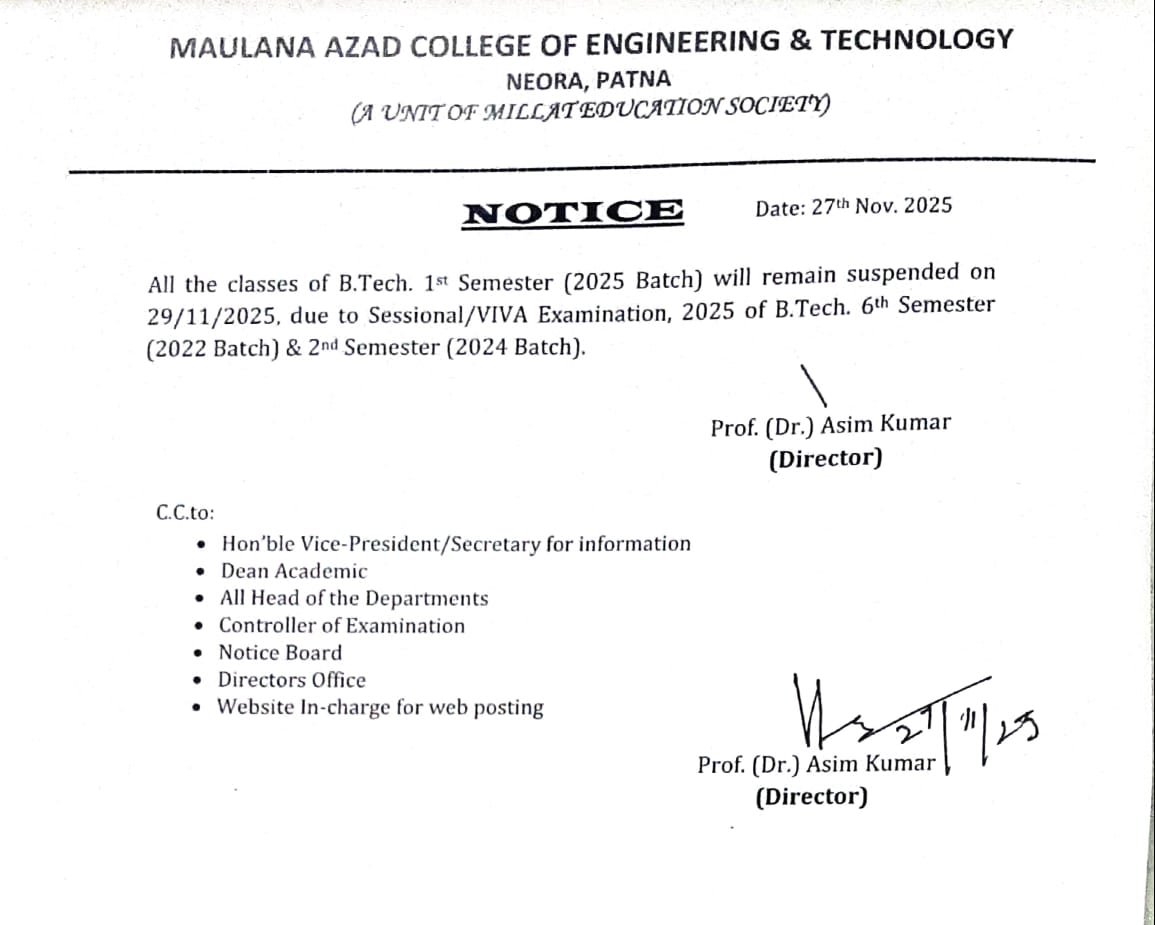 Notice for 2025 Batch (B.Tech & Diploma)Click here to view